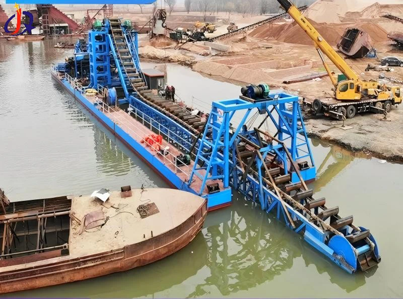 சங்கிலி வாளிகள், சங்கிலிகள், நீருக்கடியில் ஆயுதங்கள் மற்றும் இயக்கி மோட்டார்கள் ஆகியவற்றை உள்ளடக்கிய இந்த அமைப்பு, அதிக முறுக்குவிசையை வழங்க ஹைட்ராலிக் மோட்டார்களைப் பயன்படுத்துகிறது, இது ≤300 மிமீ விட்டம் கொண்ட கூழாங்கற்களை நசுக்க உதவுகிறது மற்றும் தொடர்ந்து மணல்-சரளை கலவைகளை தோண்டி எடுக்கிறது.