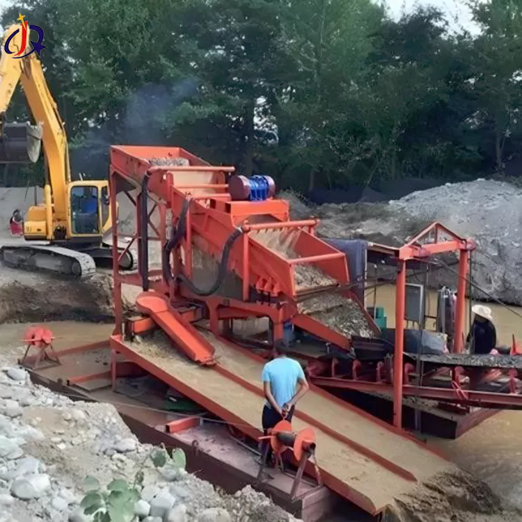 வண்டல் தங்கத் தாதுக்களில் இருந்து தங்கத்தைப் பிரித்தெடுப்பது தங்கச் செயலாக்க ஆலையின் முக்கிய வணிகமாகும். வண்டல் தங்கத் தாதுக்கள் பொதுவாக ஆறுகள் அல்லது தாழ்வான பகுதிகளில் மணல் மற்றும் சரளை கலந்த கீழ் அடுக்குகளில் காணப்படுகின்றன. இந்த ஆலைகள் மணல் மற்றும் சரளை ஆகியவற்றிலிருந்து வண்டல் தங்கத்தைப் பிரிக்க சிறப்பு உபகரணங்கள் மற்றும் தொழில்நுட்பங்களைப் பயன்படுத்துகின்றன, அதைத் தொடர்ந்து மேலும் சுத்திகரிப்பு செயல்முறைகள் இறுதியில் உயர் தூய்மையான தங்கப் பொருட்களைப் பெறுகின்றன. Qingzhou Jinqi Mining Machinery Co., Ltd. தங்கச் செயலாக்க ஆலையை உருவாக்கும் அனைத்து உபகரணங்களையும் உற்பத்தி செய்கிறது.